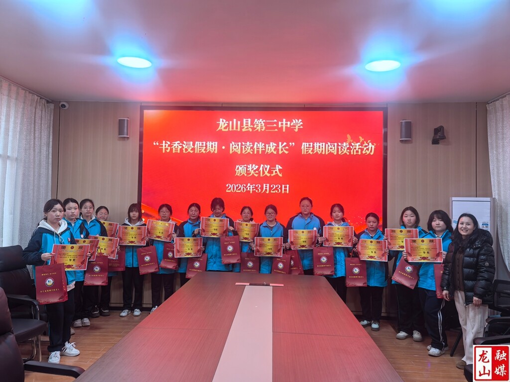 龙山县融媒体中心3月23日讯(通讯员  梁静)3月23日上午,第三中学“书香浸假期·阅读伴成长”假期阅读活动颁奖仪式举行。