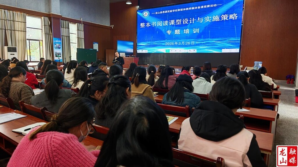 龙山县融媒体中心3月27日讯(通讯员 李敏 田芳 彭民燕) 3月26日,龙山县思源实验学校教联体"整本书阅读课型设计与实施策略"专题培训举行。本次培训聚焦"导推分"三种课型,思源学校、召市小学、石牌小学、桶车学校相关负责人及语文教师100余人参训,为参训教师带来了一场理论与实践深度融合的专业研修。