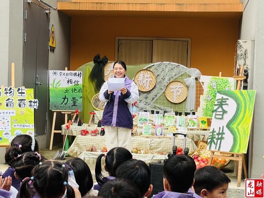 活动伊始,欢快的田园风音乐拉开序幕,主持人热情开场,宣布春耕播种开耕仪式正式启动。该园负责人为孩子们送上春日祝福,鼓励大家爱护植物、耐心照料,在劳动中收获成长。随后的 “春耕小课堂” 上,教师用生动互动的方式,向幼儿讲解春天播种的意义、种子生长的条件,帮助孩子们认识小番茄、萝卜、向日葵等常见种子,掌握简单的种植知识。