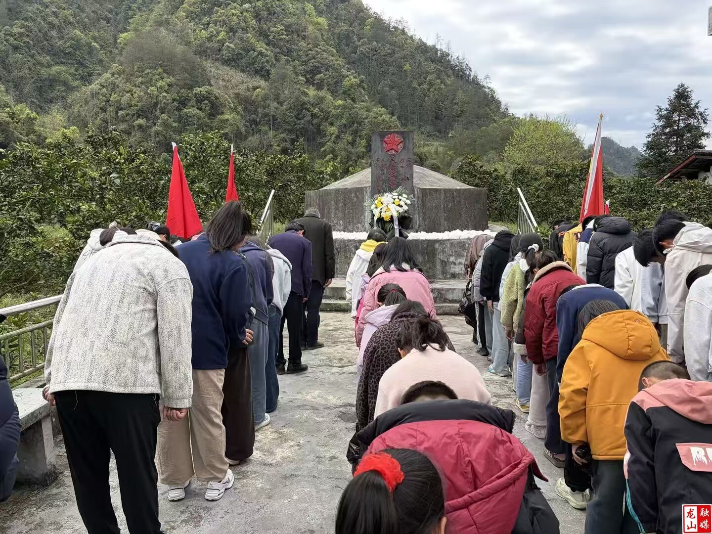 祭扫现场,师生整齐列队、肃立默哀,敬献花篮。学生、教师代表依次发言,追思先烈奉献精神,号召师生传承红色基因、砥砺奋进。随后,师生瞻仰烈士墓,沉浸式接受红色教育。