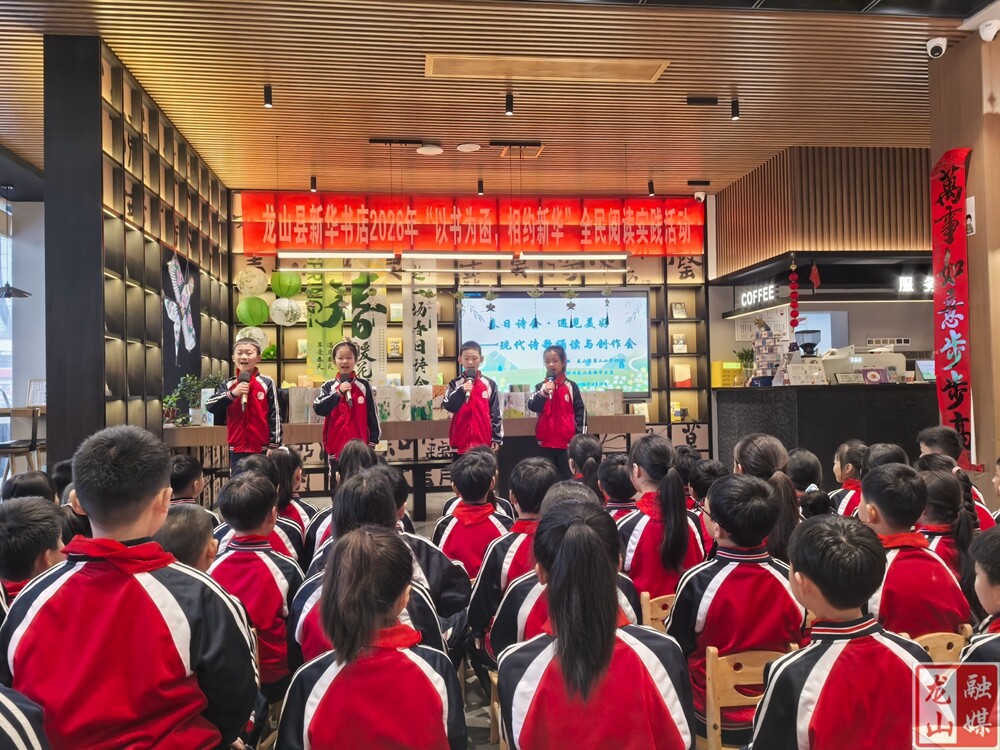 龙山县融媒体中心4月14日讯(通讯员 沈丹丹 王莉 叶飞 颜文杰)4月14日,第二小学“春日诗会·遇见美好”——现代诗歌诵读与创作会活动在县新华书店举行。该校四年级师生以诗为媒,一起感受现代诗歌的文字之美、韵律之美,在书香与春意中邂逅美好、滋养心灵。此次活动是由县委宣传部指导,县第二小学与新华书店紧密协作,为广大师生和读者奉上的一场诗意盛宴。