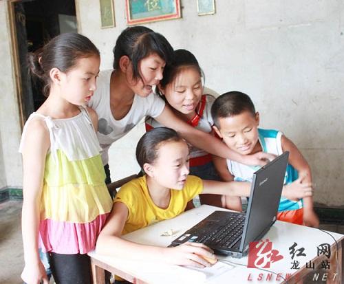 暑期在家学生儿童登陆QQ与远方打工的亲人联系,拉近了彼此的距离