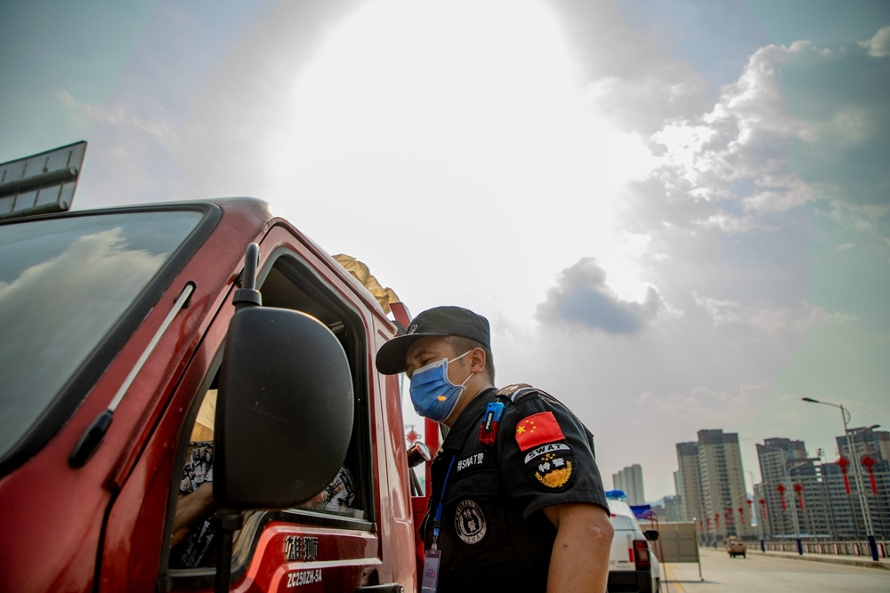龙山县公安局特巡警大队党员干部在湘鄂情大桥疫情防控监测点值守