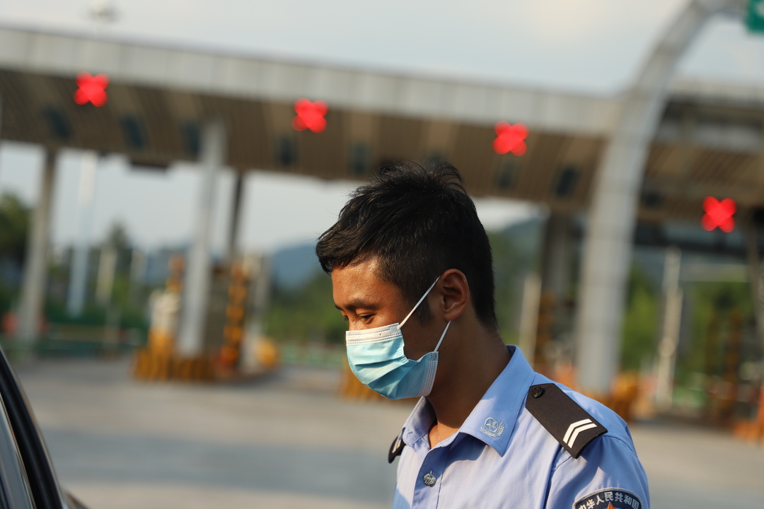 农车镇党员干部在农车高速口疫情防控监测点值守