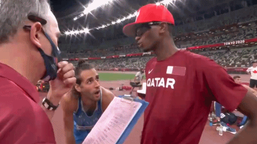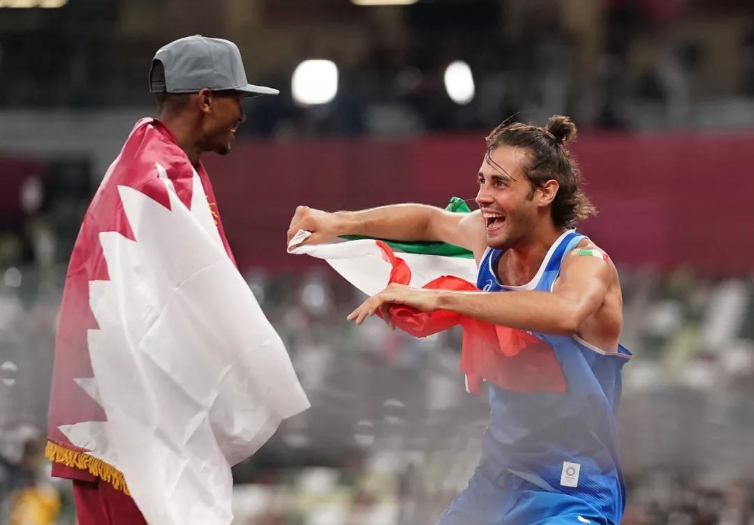 8月2日,波莉、拉哈尤在赛后庆祝胜利。新华社记者 欧东衢 摄