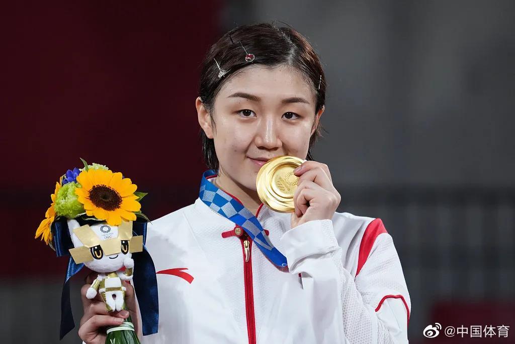 8月3日,女子平衡木冠军中国选手管晨辰(中)、亚军中国选手唐茜靖(左)与季军美国选手拜尔斯在颁奖仪式上。新华社记者 程敏 摄