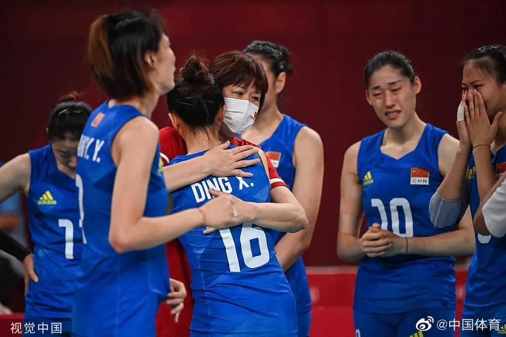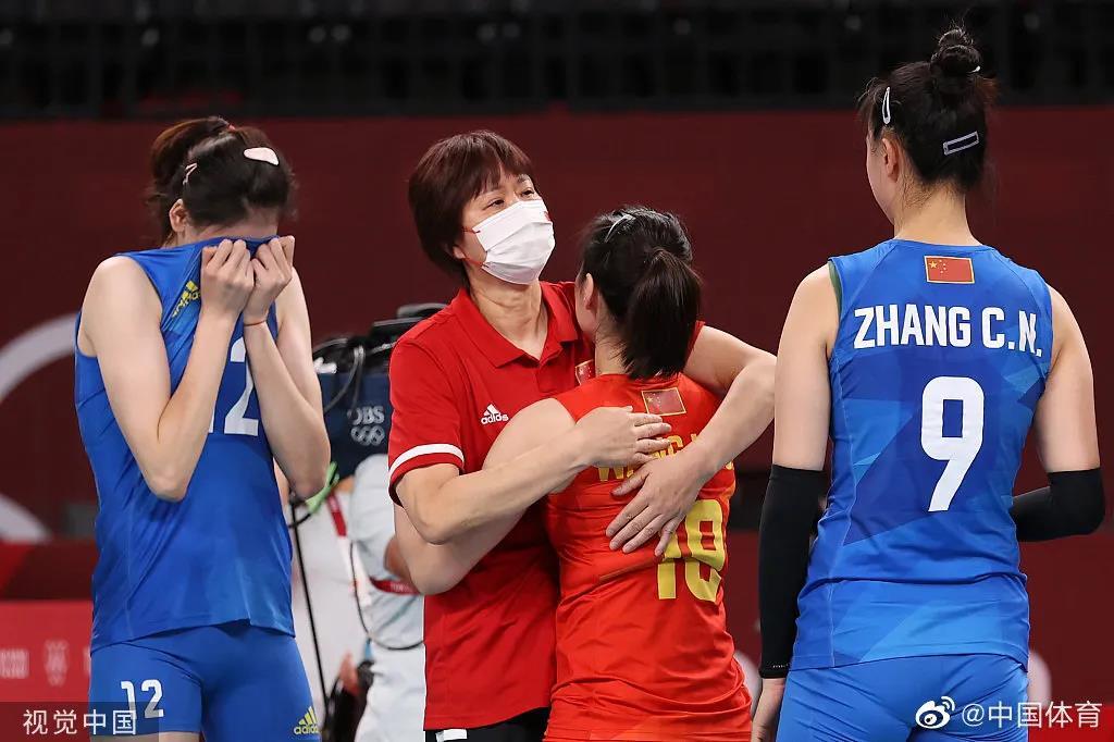 7月29日,何冰娇(红衣)在安慰哭泣的张蓓雯。新华社记者 杨磊 摄