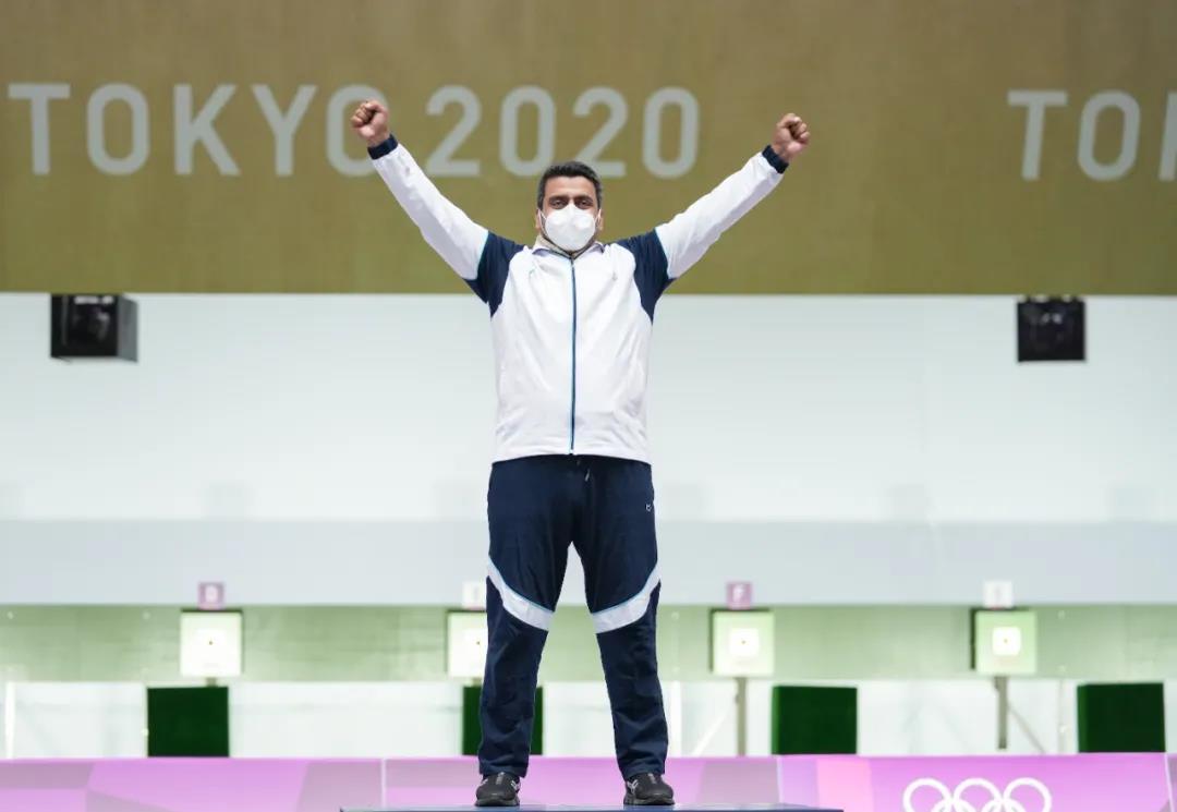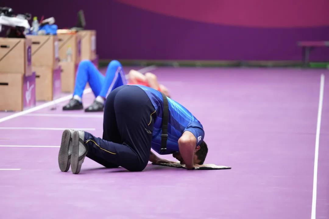 7月24日,冠军伊朗选手福鲁吉在夺冠后庆祝。新华社记者 鞠焕宗 摄