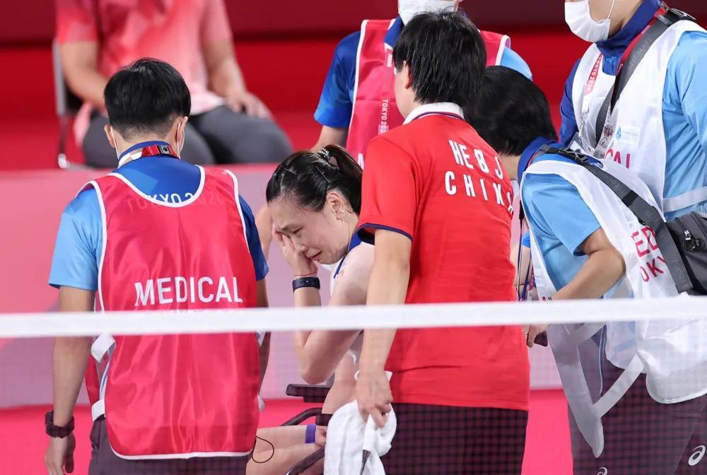 7月29日,张蓓雯受伤退赛。新华社记者 朱峥 摄
