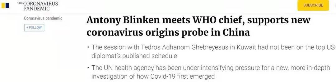 △《南华早报》:这次会晤并不在布林肯官方日程上,世卫组织正面临美国越来越大的压力。