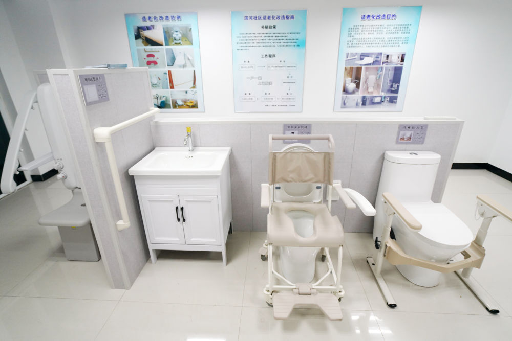 ↑承德市高新区滨河社区居家养老服务中心展示的适老化改造范例(2021年8月24日摄)。