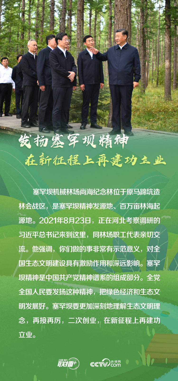 联播+林海茫茫,直入天际;凉风习习,清爽宜人。8月23日,习近平总书记来到河北省塞罕坝机械林场月亮山,察看林场自然风貌,听取河北统筹推进山水林田湖草沙系统治理和林场管护情况介绍,看望护林员。