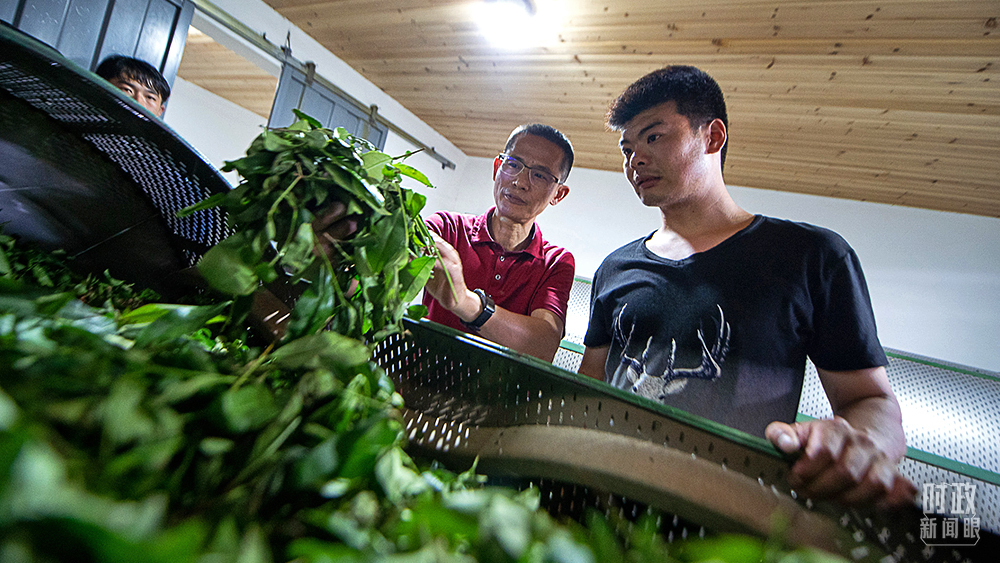 △2021年5月,福建武夷山,当地科技特派员向年轻茶人传授茶青发酵情况辨识方法。(图/视觉中国)