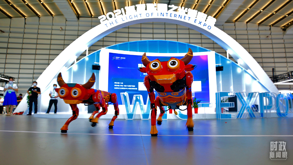 △2021年9月25日,浙江乌镇,在2021年世界互联网大会“互联网之光”博览会上,智能机器牛的表演吸睛无数。(图/视觉中国)