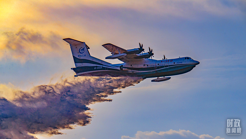△2021年9月,广东珠海,大型水陆两栖飞机——“鲲龙”AG600演示空中投水,展示强大的火场灭火能力。(图/视觉中国)