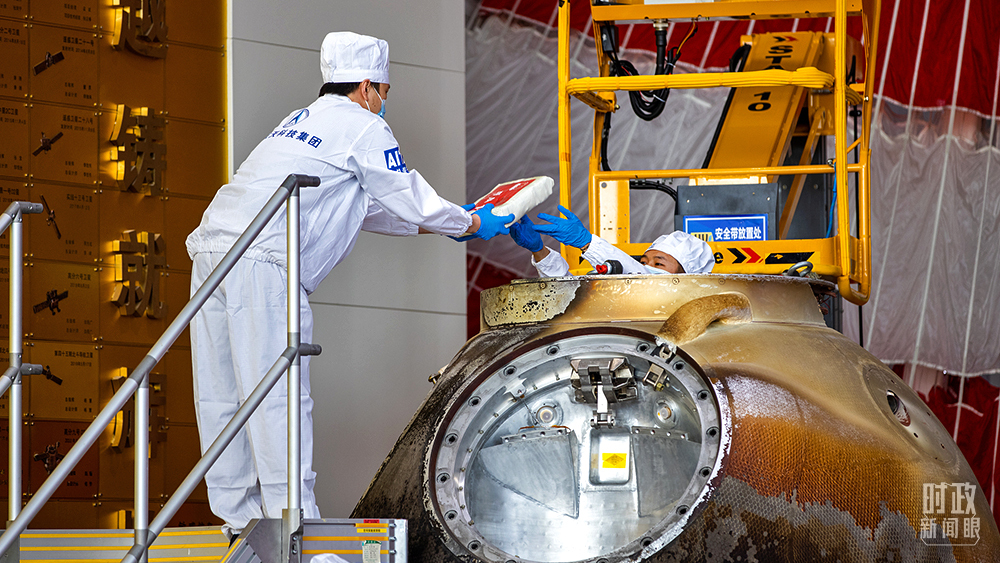 △2021年9月27日,神舟十二号载人飞船返回舱开舱仪式在北京举行,现场共同见证航天育种等搭载物品出舱。(图/视觉中国)