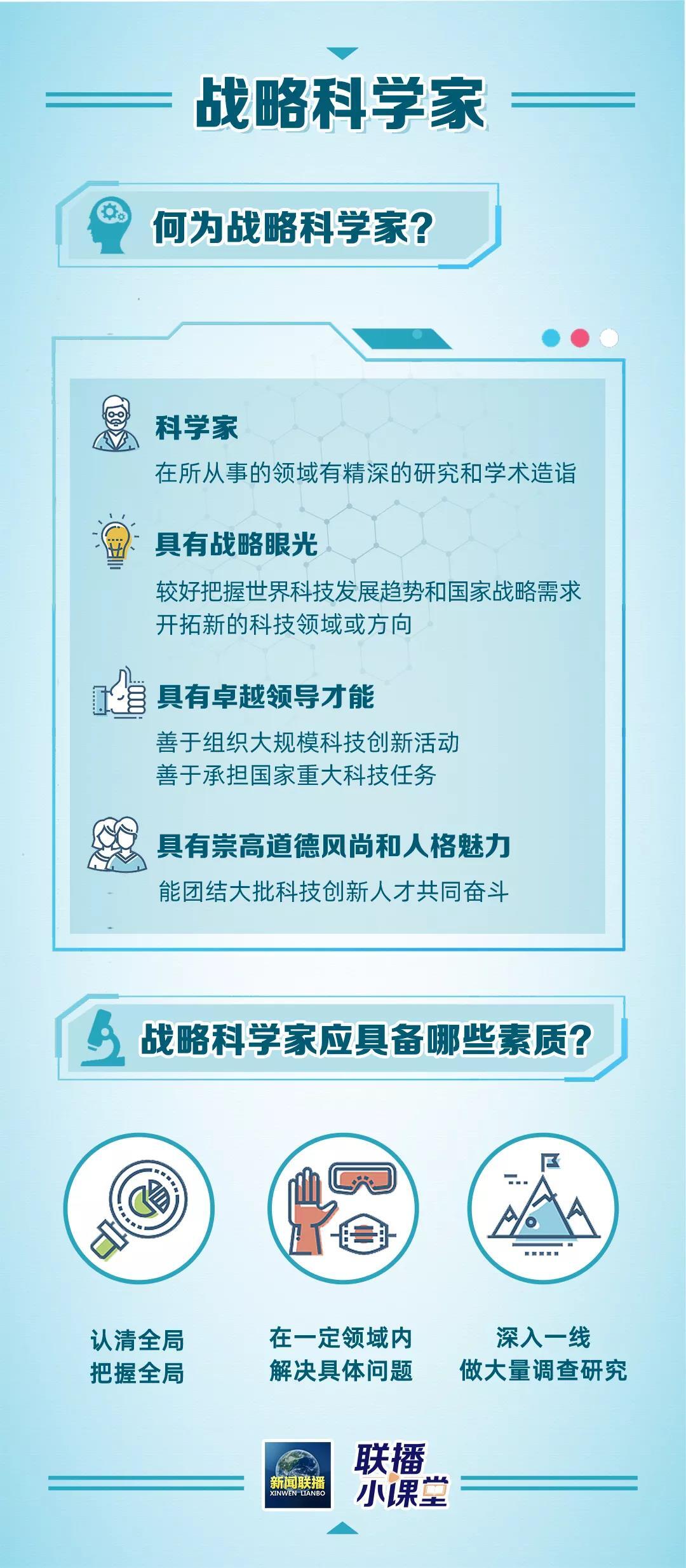 简单说,战略科学家既是战略家,也是科学家,是科技人才中的“帅才”,在跨学科研究、大兵团作战组织等方面发挥着重要作用,是担纲“国之重器”、突破“卡脖子”技术难题的领军人物。