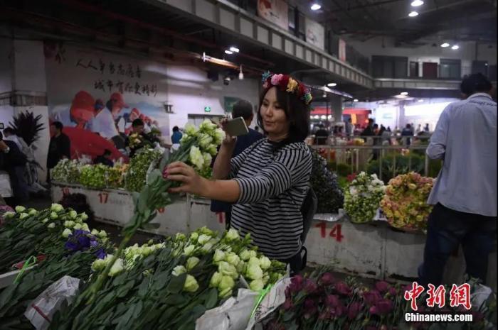 昆明斗南花市吸引游客打卡购买。中新社记者 康平 摄