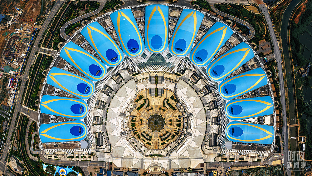 △昆明滇池国际会展中心以“孔雀翎羽”为设计概念。《生物多样性公约》第十五次缔约方大会就在这里举行。(图/视觉中国)