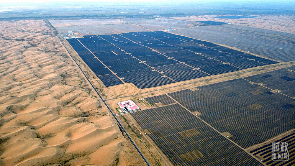 △内蒙古鄂尔多斯,达拉特旗光伏发电领跑奖励基地,是全球最大的沙漠集中式光伏电站。(图/视觉中国)