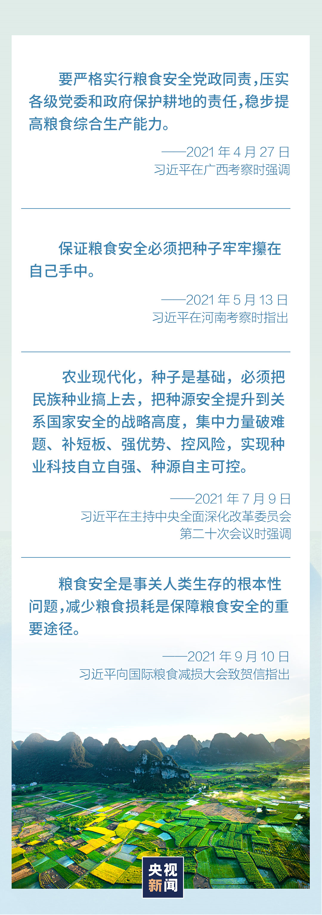 地方考察途中临时下车察看粮食作物长势、主持召开重要会议、向国际粮食减损大会致贺信……今年以来,总书记多次就粮食安全作出重要论述——
