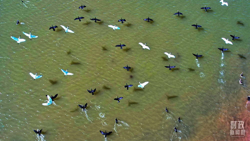 △候鸟掠过黄河水面。(总台国广记者李晋拍摄)