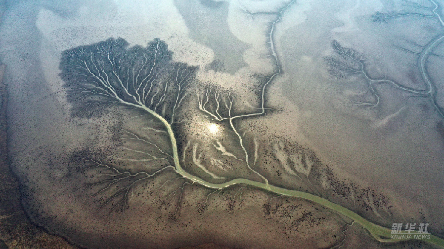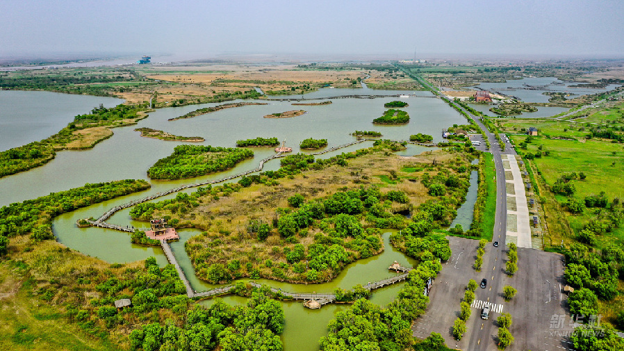 山东黄河三角洲国家级自然保护区景色(无人机照片,2021年5月13日摄)。
