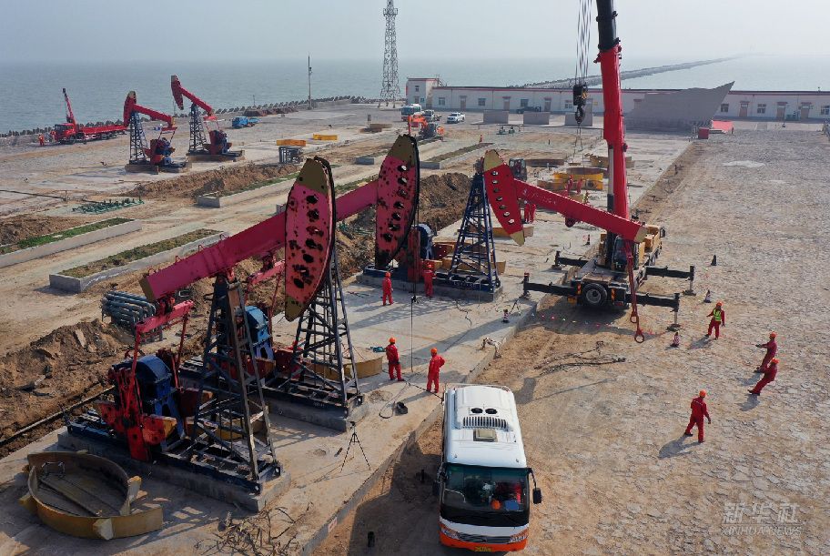 位于黄河入海口的胜利油田在服务国家能源安全的同时,顺应生态文明建设大势。2020年,位于自然保护区核心区、缓冲区内的300处油田生产设施全面完成退出。这是工人在拆除采油设备设施(2020年10月19日摄)。