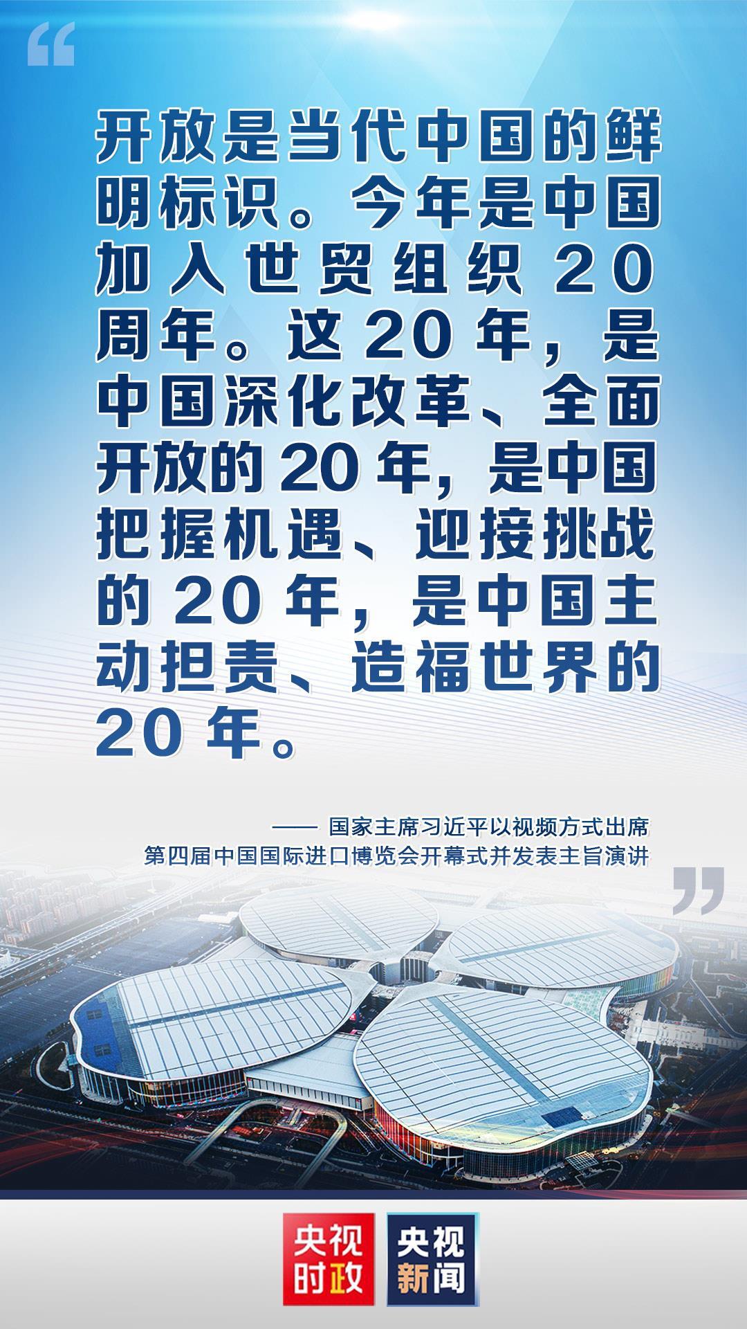 国家主席习近平4日以视频方式出席第四届中国国际进口博览会开幕式并发表主旨演讲。