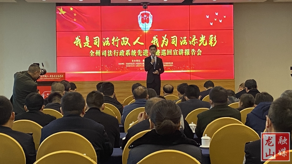 龙山县融媒体中心11月17日讯(记者 蒋慧 王秋月)11月16日,"我是司法行政人,我为司法添光彩"全州司法行政系统先进事迹巡回宣讲报告会在龙山举行。州司法局党组书记、局长、二级巡视员欧道胜,州司法局党组成员徐卫红,县领导梁兴华、吴昱杰、张明栋、杜丛志出席报告会。