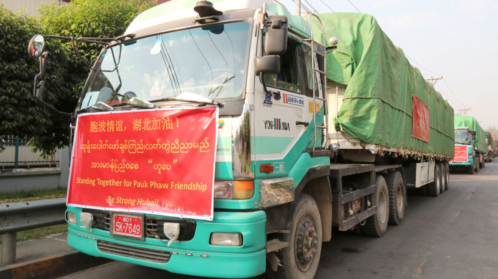 ↑2020年3月1日,为支援中国抗击新冠肺炎疫情,缅甸向中国捐赠大米。
