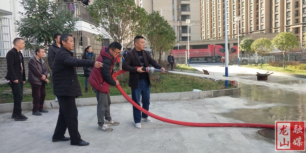 龙山县融媒体中心11月30日讯(记者 吴进阳)11月30日下午,龙山县发改局、县消防救援大队、民安街道在土城坝集中安置区举行消防应急演练活动,县委常委、常务副县长李延堃,县消防救援大队大队长伍斌现场指导。