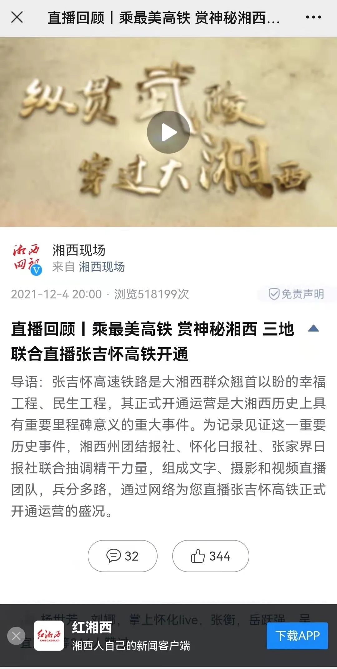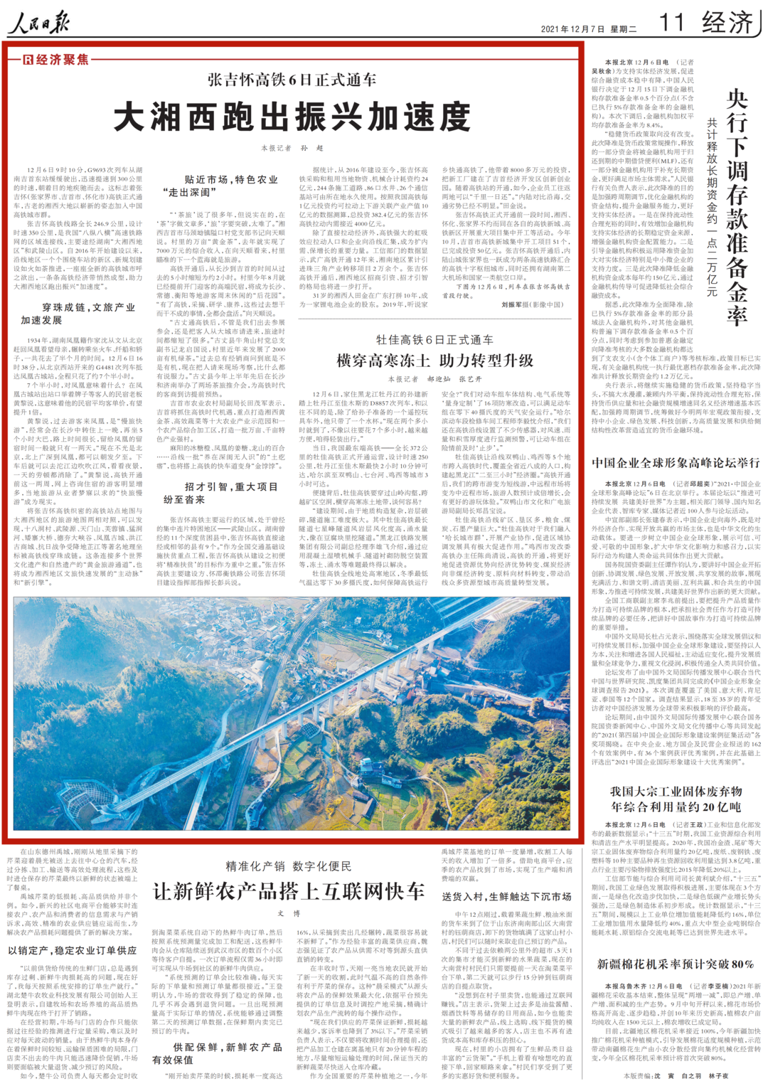 12月6日,中央电视台《新闻联播》刊播《张吉怀高铁今天正式开通》。