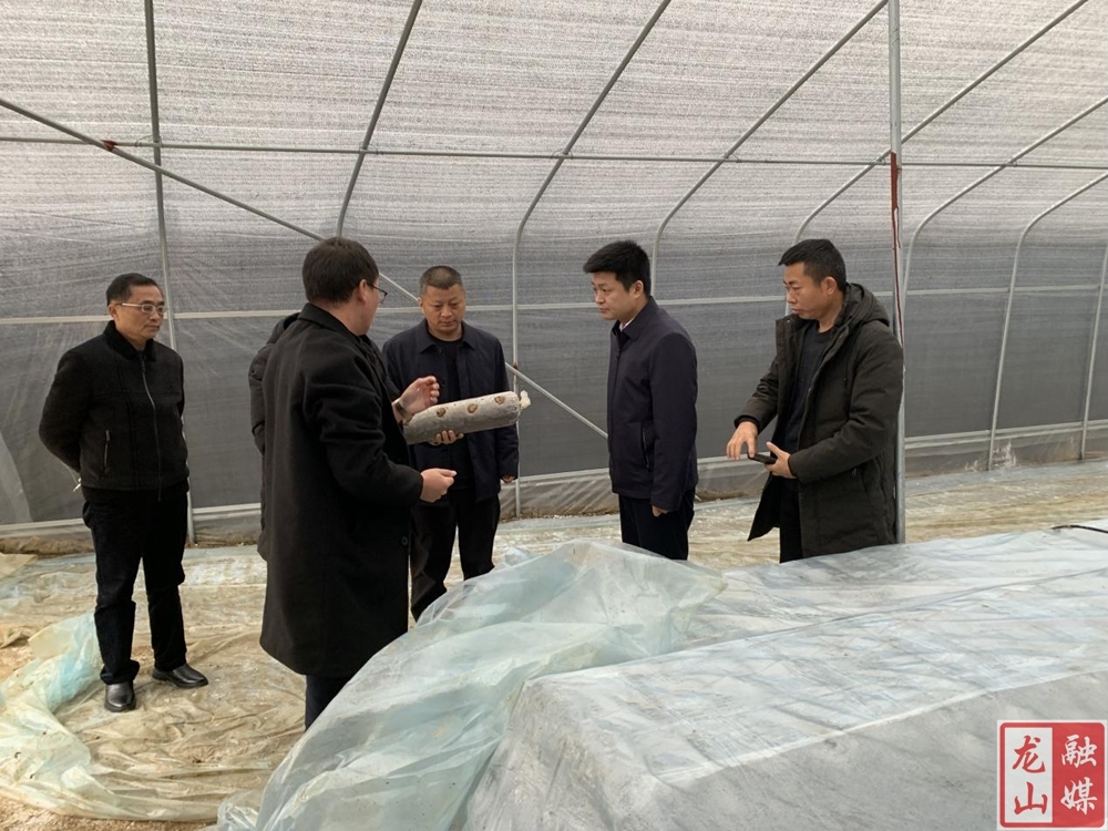 黄勇在桃兴种植农民专业合作社察看香菇菌棒