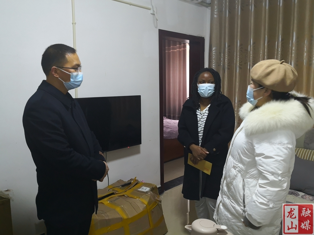 龙山县融媒体中心1月14日讯(通讯员  杨运大)1月14日,县委常委、县委办公室主任谭必松就“两节”期间涉外疫情防控工作进行调研并走访慰问外籍教师及港澳同胞。