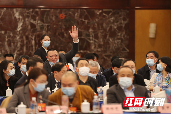 会议期间,一位代表举手“抢话筒”,主动请求发言。