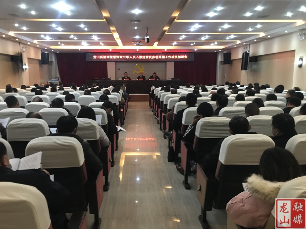 龙山县融媒体中心1月25日讯(记者 彭清驰)1月21日,龙山召开清理整顿国家公职人员入股经营民办幼儿园工作动员部署会,县委常委、县纪委书记、县监委主任龙江,副县长、县公安局局长吴昱杰,副县长贾高顺出席会议。