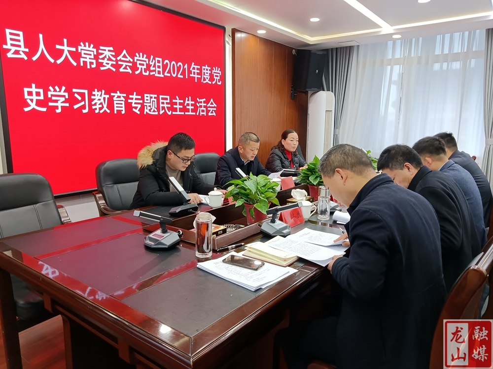 龙山县融媒体中心1月27日讯(记者 彭思倩)1月26日,县人大常委会主任黄勇主持召开县人大常委会党组2021年度党史学习教育专题民主生活会,县人大常委会副主任叶明江、梁海波、向大龙参加会议。