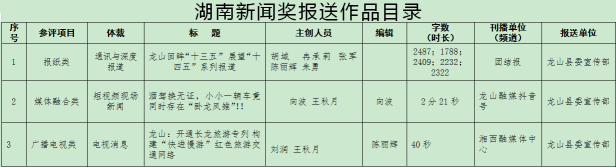 按照《关于开展2021年度湖南新闻奖评选工作的通知》,经龙山县融媒体中心初评,县委宣传部审定,以下4件作品拟报送参评2021年度湖南新闻奖,现进行公示。公示时间:2022年2月7日至2月11日,如有异议,请与龙山县融媒体中心联系。