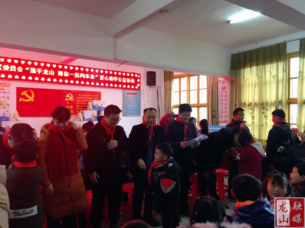龙山县融媒体中心2月17日讯(通讯员 彭艳丽)2月17日,共青团长沙市雨花区委员书记喻浩浩一行到龙山县石牌镇开展“携手龙山,雨你一起向未来”爱心助学公益活动。龙山县委常委、副县长、长沙市对口帮扶龙山县工作组组长赵雪峰,龙山县人大常委会副主任、石牌镇党委书记向大龙出席活动。