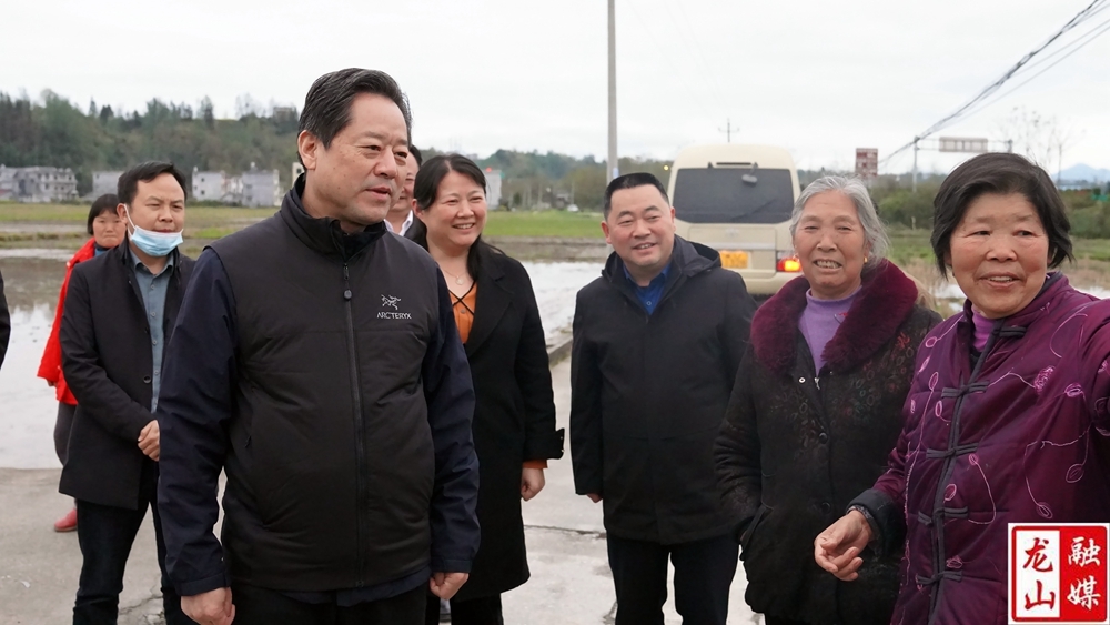 虢正贵调研石羔街道干比社区超级杂交水稻第五期高产攻关百亩片龙山基地并与当地村民亲切交谈,了解春耕备耕情况