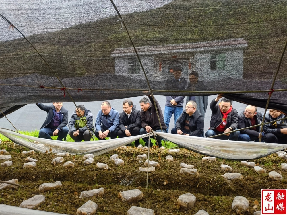 赵雪峰、杜丛志在万龙村查看羊肚菌产业