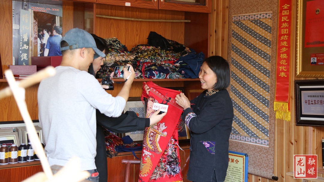 湖南日报社长沙分社记者在惹巴拉景区采访土家织锦技艺代表性传承人刘代娥