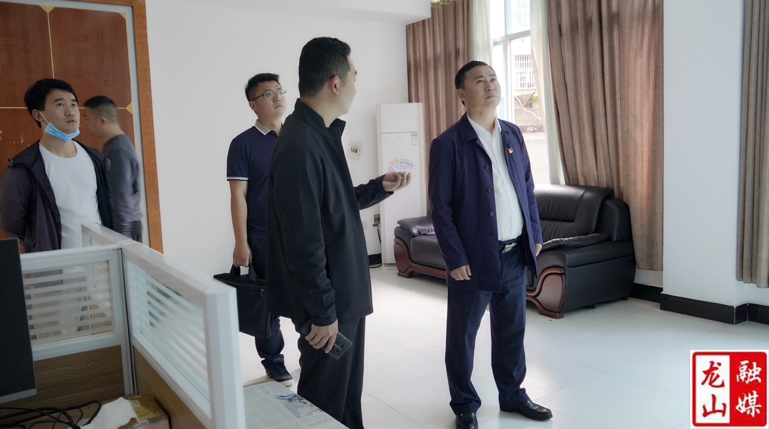 县委副书记、县长周胜益(右一)到应急管理局了解相关工作流程
