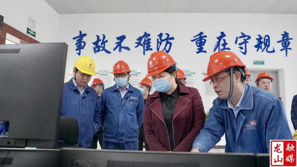 县委书记时荣芬(右二)在落水洞水库电站查看防汛备汛工作