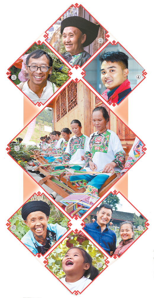 图②:身穿民族服饰的村民在自家门口小憩,露出灿烂的笑容。