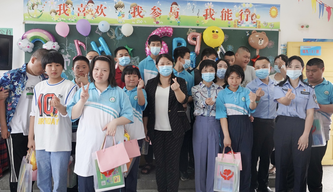 县委书记时荣芬在特殊教育学校与学生一起游戏互动