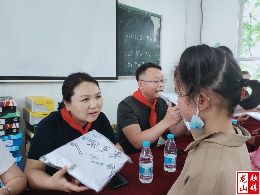 龙山县融媒体中心6月6日讯(记者 莫代银)6月2日,县委统战部、县工商联及部分爱心企业来到里耶镇贾市小学,开展“大手牵小手·六一献爱心”进校园活动,为同学们送上夏季校服、面包、水杯等学习生活用品。县政协副主席、县工商联主席李冬梅参加活动。