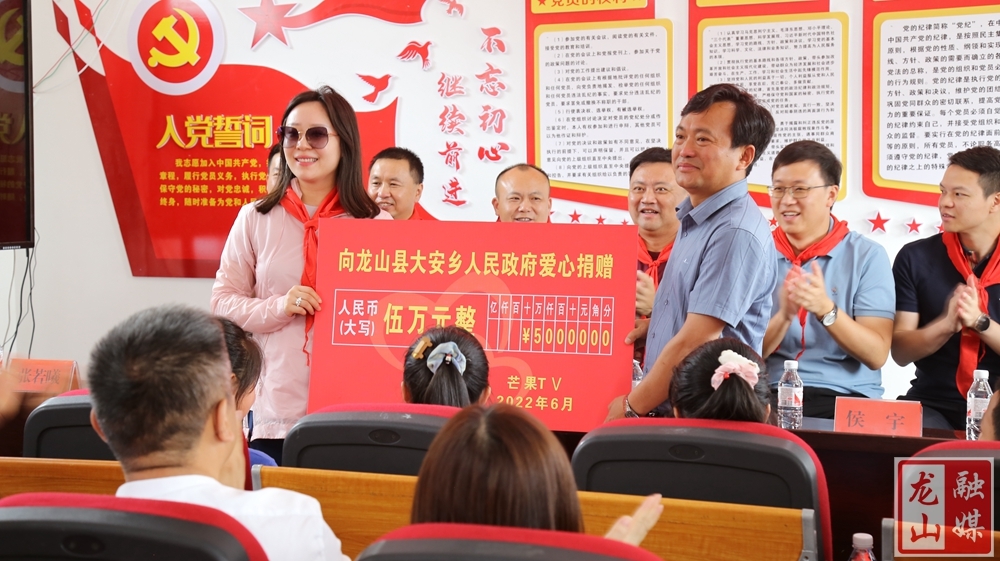 邹犇淼一行走进大安乡中心小学,湖南兴旺科技公司、长沙云上栏山科技公司、乐田智作(湖南)影视技术公司、湖南聚恒集团、芒果TV等园区企业代表为学校进行了爱心捐赠,以真情实意支持学校的发展。