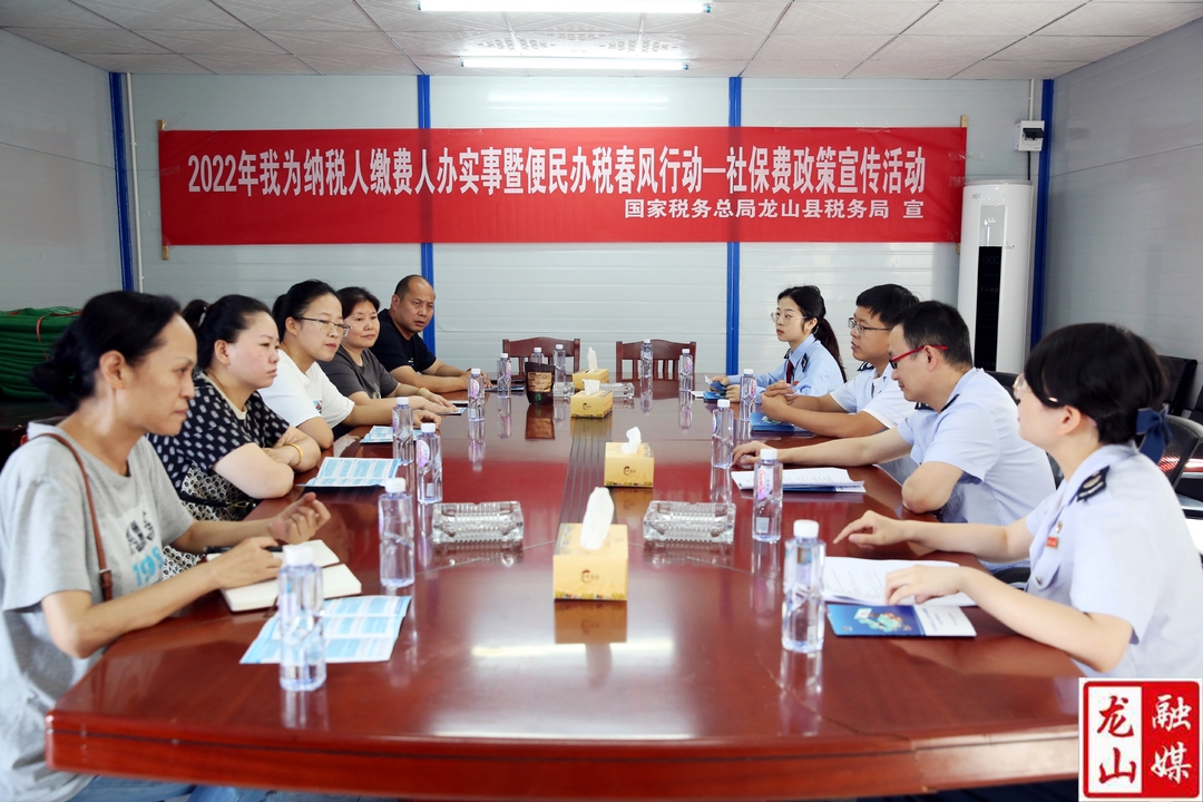 龙山县融媒体中心6月10日讯(通讯员 张元元 姜长春)为实现“应保尽保”,瞄准短期务工人员等重点群体靶向发力,扩大社会保险参保范围。6月10日上午,国家税务总局龙山县税务局开展“2022年我为纳税人缴费人办实事暨便民办税春风行动——社保费政策宣传”活动,组建社保骨干走进盛世家园工地,围绕城乡居民养老保险、灵活就业人员养老保险、医疗保险等展开宣讲活动。
